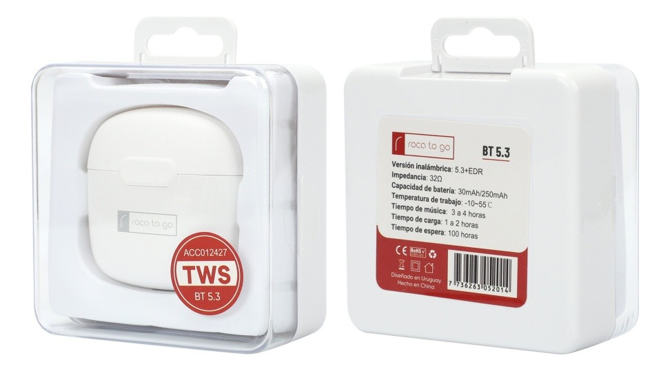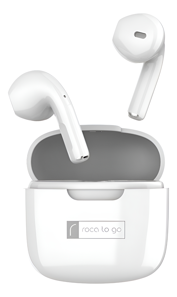Los Auriculares Bluetooth Roca To Go TWS en color blanco son la opción ideal para quienes buscan comodidad y calidad de sonido en su dÃa a dÃa. Su diseño in-ear asegura un ajuste perfecto, permitiendo disfrutar de la música con total libertad de movimiento. Gracias a su conexión inalámbrica, te olvidarás de los enredos de cables, convirtiendo tus actividades cotidianas en experiencias más agradables.