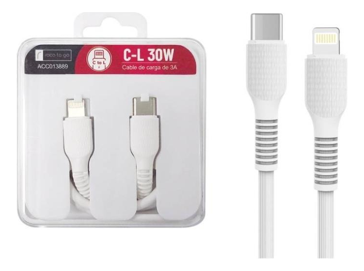 El Cable De Datos Roca To Go Tipo C a Tipo iPhone Lightning de 1 metro es la solución perfecta para quienes buscan una conexión rápida y eficiente entre dispositivos. Este cable cuenta con un conector de entrada Tipo C y un conector de salida Lightning, lo que lo hace ideal para usuarios de iPhone que necesitan cargar o transferir datos desde dispositivos modernos.