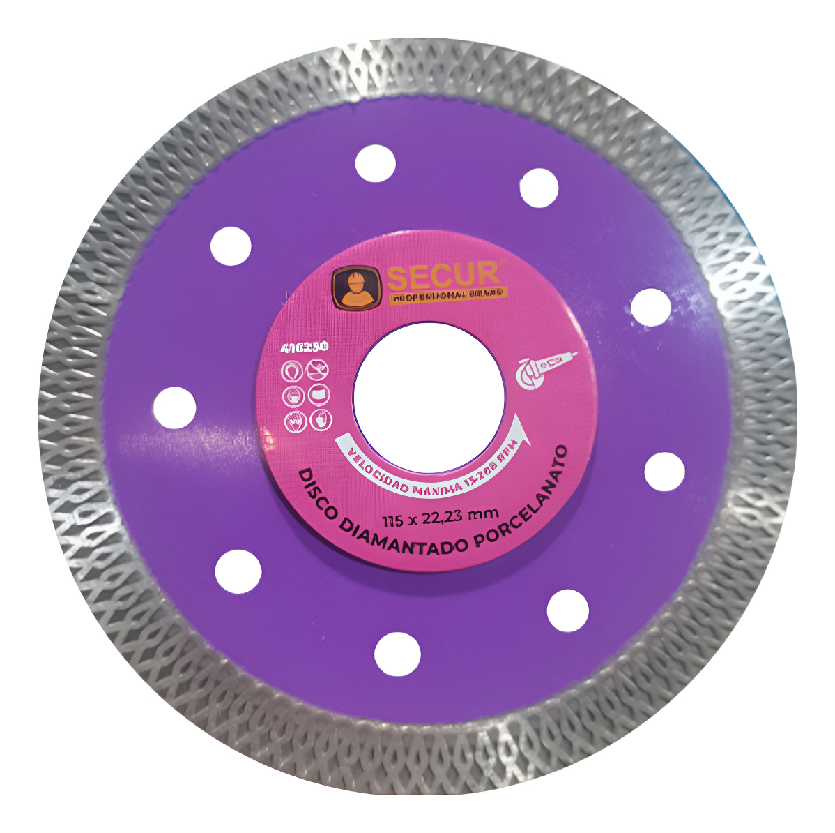 El Disco Diamantado Para Porcelanato de 115 mm de Secur es la herramienta ideal para aquellos que buscan precisión y durabilidad en sus trabajos de corte. Su diseño está pensado para ofrecer un rendimiento excepcional en una variedad de superficies, incluyendo porcelanato, mármol, azulejos, cerámica, granito y hormigón. Con un diámetro de corte de 115 mm y un diámetro central de 22,23 mm, este disco se adapta perfectamente a diferentes herramientas de corte, garantizando versatilidad en su uso.