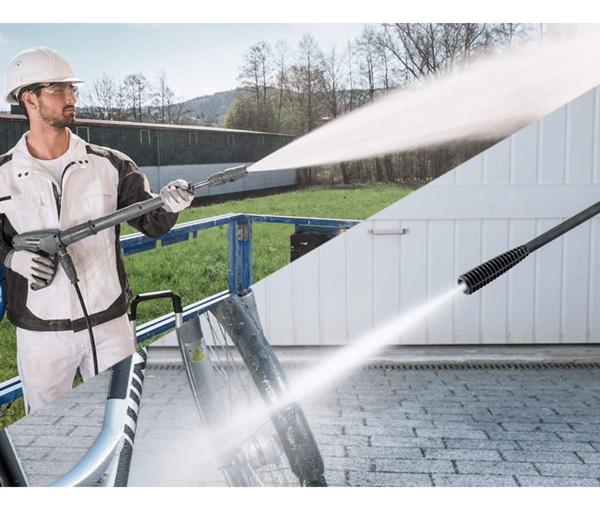 Fachadas y Exteriores: Ideal para limpiar paredes, aceras, y superficies exteriores de edificios.