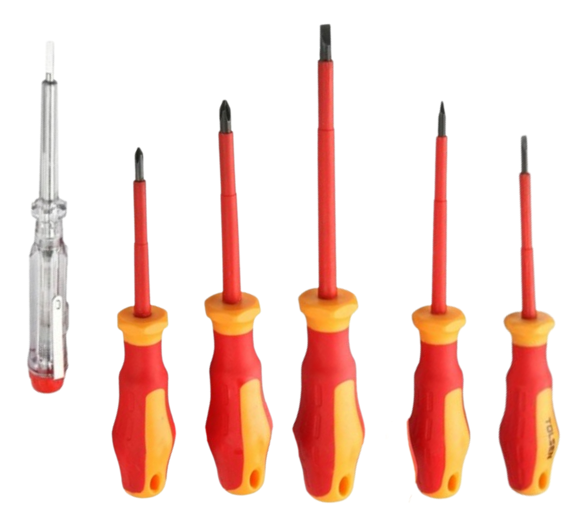 Asegura tu seguridad y eficiencia en el trabajo con el Juego de Destornilladores Aislados Tolsen de 1000V. Este set de 6 piezas está diseñado para cumplir con los estándares más altos de calidad y seguridad, ideal para trabajos eléctricos.