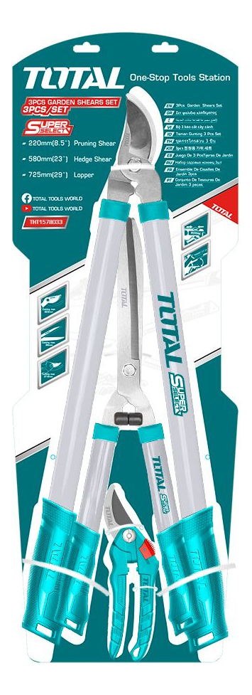 Juego, Set De 3 Tijeras De Poda Total Para Jardín – Tht1578033 Turquesa