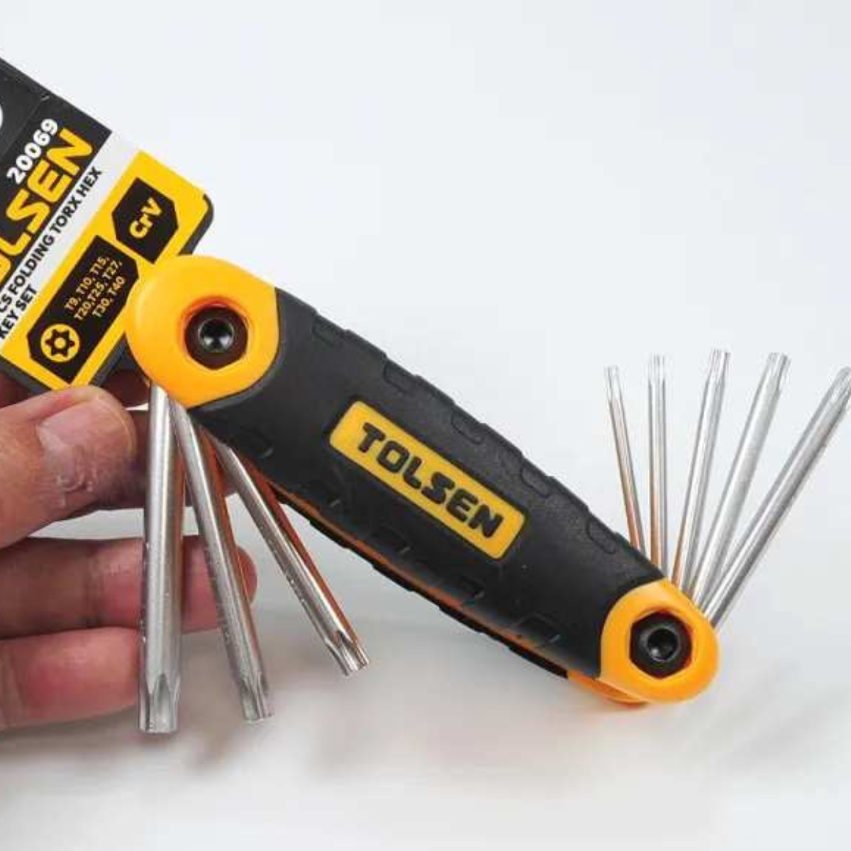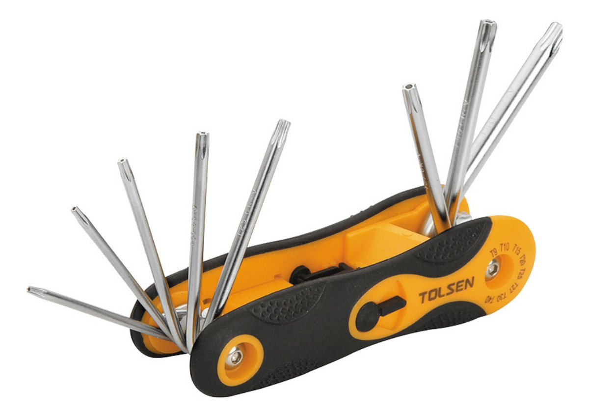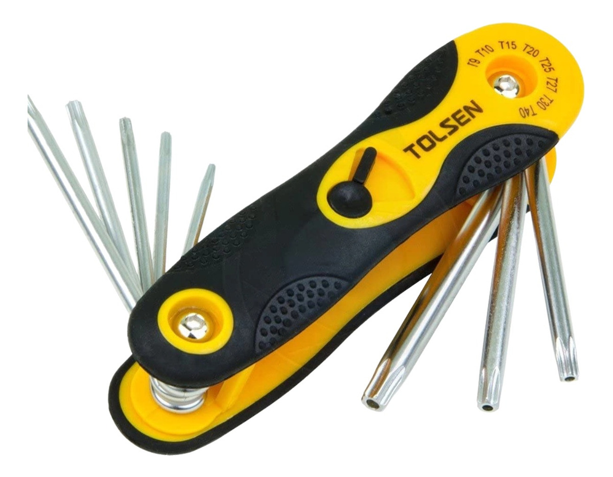Optimiza tus herramientas con el Set Tolsen de 8 Llaves Torx T9-T40 (Navaja) y disfruta de la calidad y funcionalidad en cada tarea. ¡Compra ahora y lleva la eficiencia a tus proyectos!
