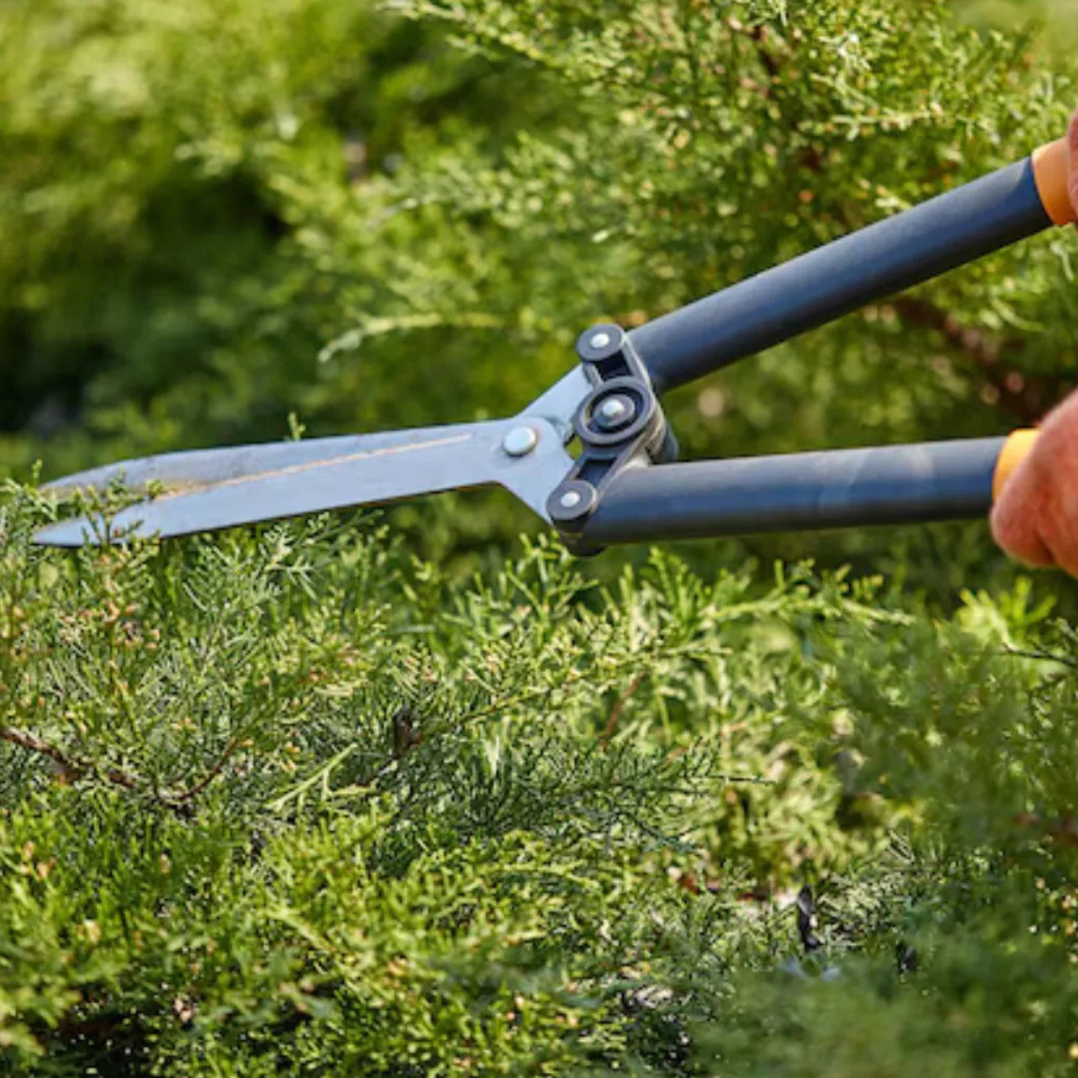 – La tijera es propia para podar gajos altos y ramas de árboles donde no es posible alcanzar con las tijeras normales (cortas).