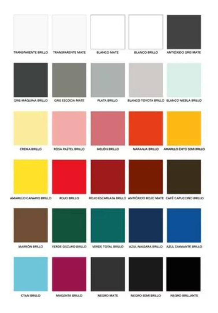 Los colores disponibles se pueden ver en la opción de color que se encuentra junto al precio de los aerosoles.