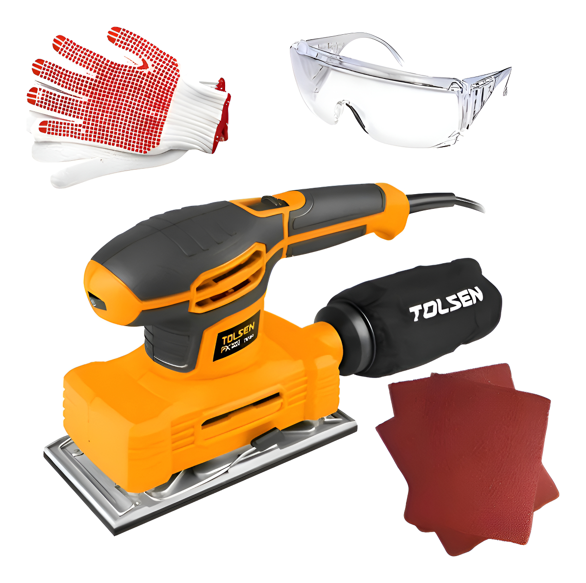 Este producto viene acompañado de accesorios prácticos, incluyendo 3 unidades de papeles de lija de diferentes granos para adaptarse a tus necesidades de lijado, y una caja de polvo para mantener tu área de trabajo limpia y ordenada durante todo el proceso.