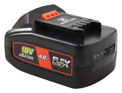 BaterÃa con sistema FLEX ONE, que significa que una baterÃa es compatible con todos los modelos de esta lÃnea. Además, cuenta con un indicador LED de nivel de carga para que siempre estés listo para trabajar.