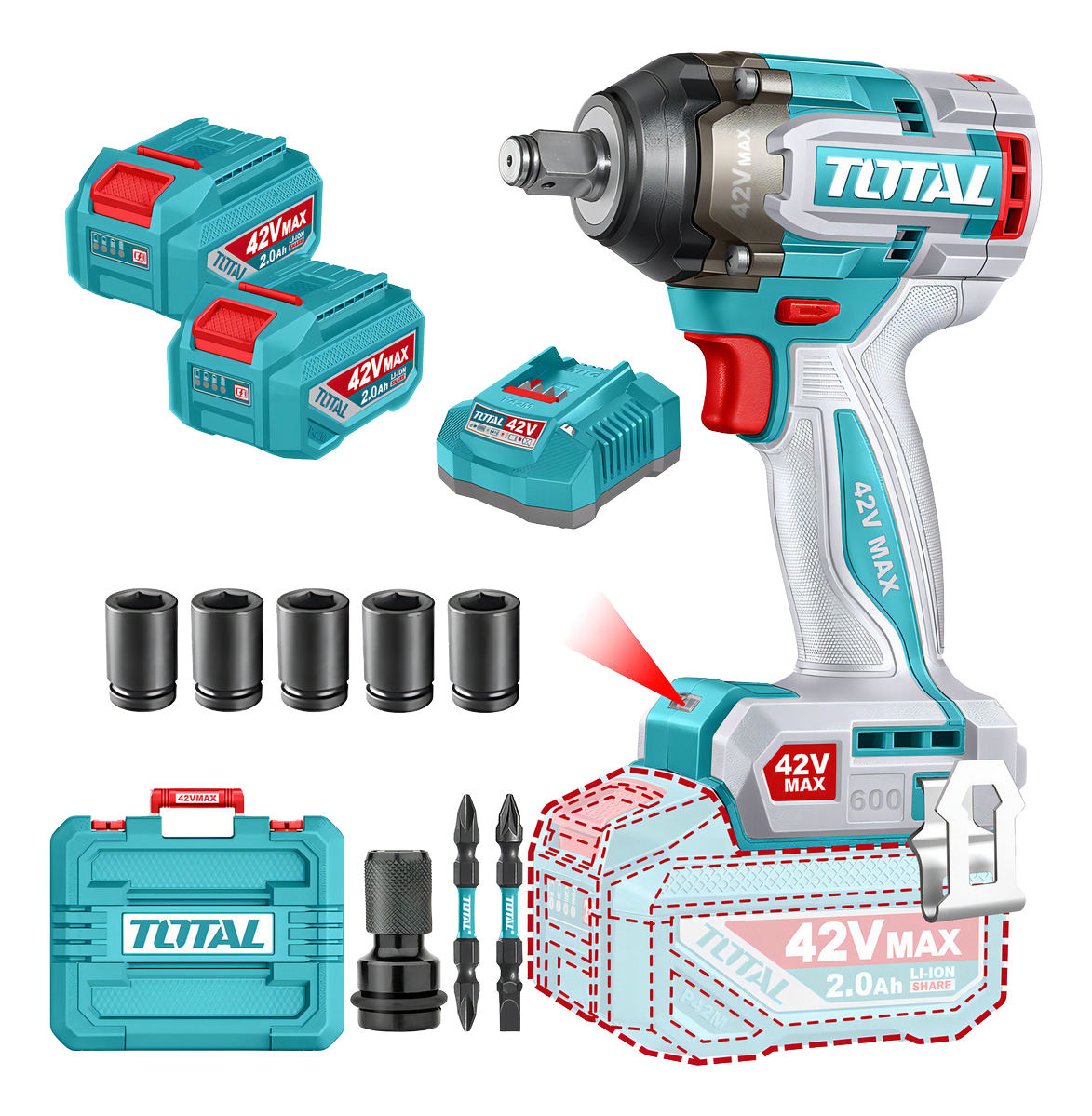 Llave Pistola D Impacto Total 42v Industrial +lentes+guantes