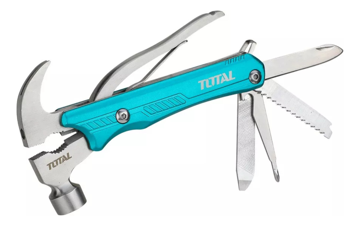El Martillo Multifunción Total THMFH0126 es una herramienta versátil y compacta, pensada para quienes buscan practicidad y eficiencia en un solo equipo. Gracias a su diseño tipo navaja con mango de aluminio resistente, combina la resistencia de un martillo tradicional con la utilidad de múltiples herramientas integradas, convirtiéndose en una opción ideal tanto para el hogar como para actividades al aire libre, reparaciones rápidas, mantenimiento o incluso para llevar en el vehículo en caso de emergencias.