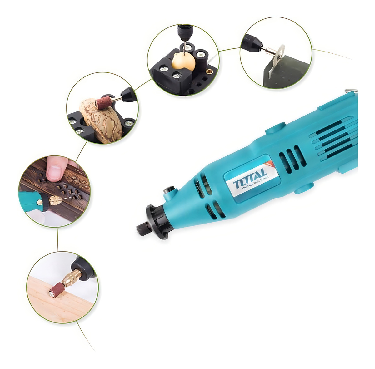 Con el minitorno Total podrás realizar cortes, pulidos y grabados precisos. Al ser fácil de manipular y de un material resistente, podrás realizar trabajos en varios materiales sin dificultades.