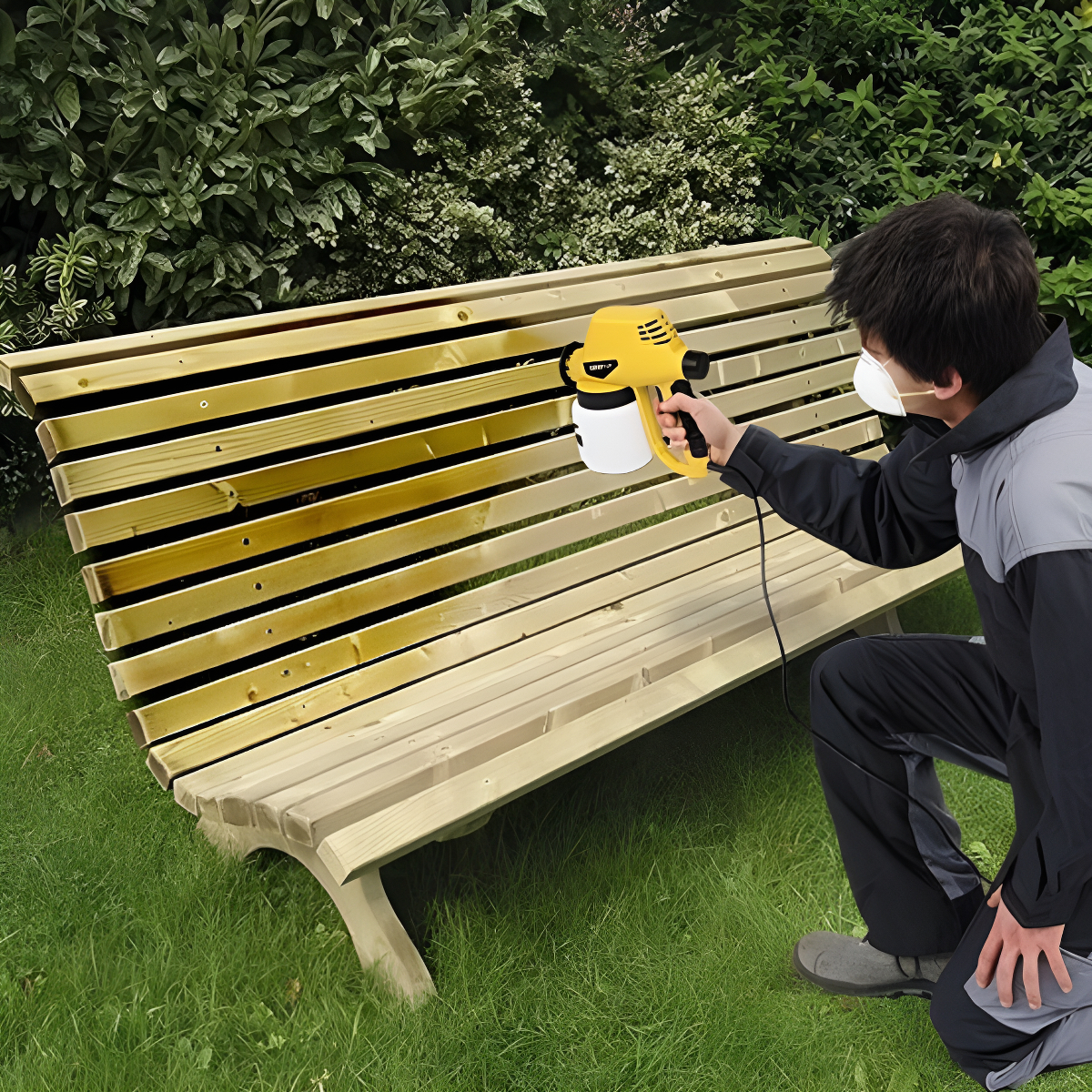 – Gran Capacidad de Reservorio: Con un reservorio de pintura de 800ml, esta pistola te permite cubrir grandes áreas sin necesidad de recargas frecuentes, lo que aumenta tu productividad y eficiencia.