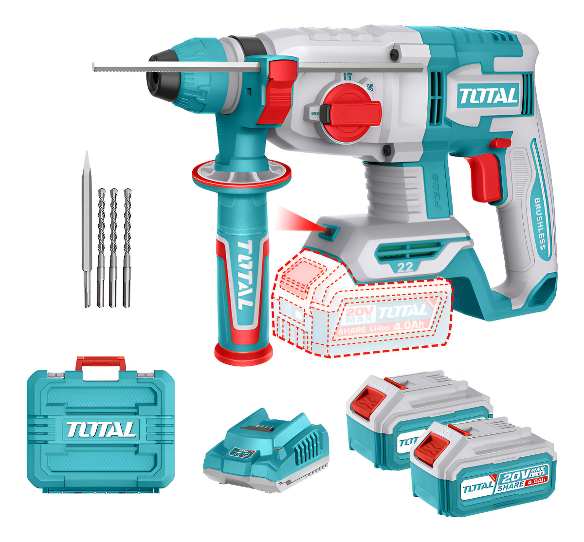 -2 BaterÃas 4.0Ah que permiten un uso continuo sin interrupciones, cargando una mientras se trabaja con la otra.