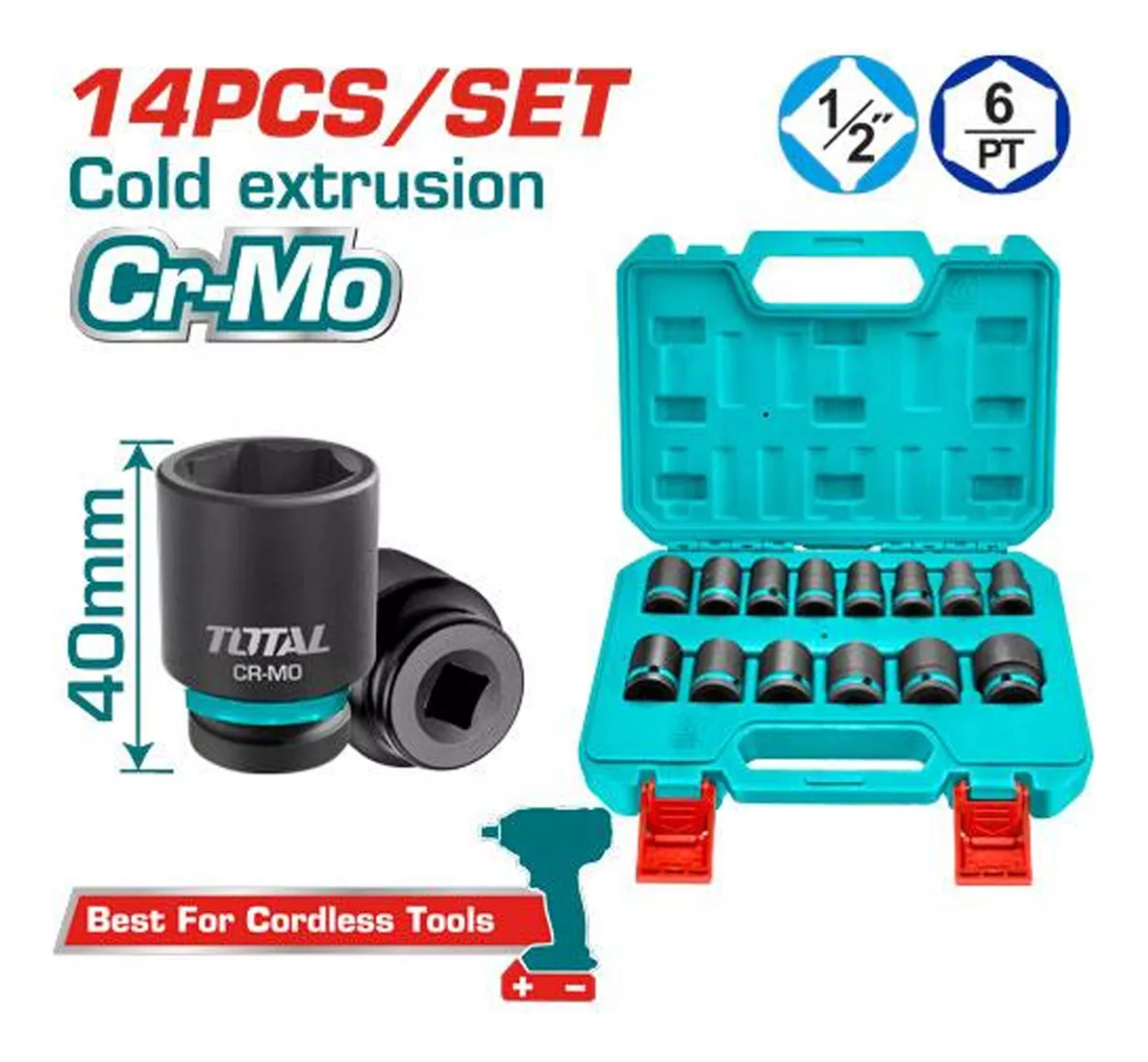 Juego 14 Dados De Impacto Total, Industrial, Encastre 1/2», 10-27mm, Con Maletín – Thistd12141