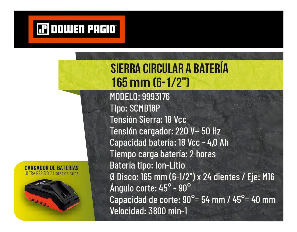 Sierra Circular Eléctrica Inalámbrica Dowen Pagio 9993176 165mm Naranja 50hz cantidad