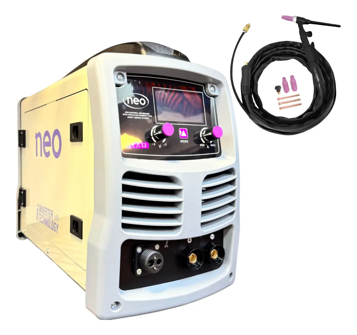 La Soldadora Neo Next IMET9200/1/220 es una herramienta versátil y potente, ideal para profesionales y aficionados de la soldadura. Con un voltaje de 220V y una frecuencia de 50-60Hz, esta soldadora ofrece una potencia nominal de 5,6kVA, permitiendo trabajar con alambres de 0,8 a 1mm y electrodos de 2.0 a 3.2mm. Su rango de amperaje de 20-200A garantiza un rendimiento óptimo en diversas aplicaciones. Además, cuenta con una pantalla digital que facilita la visualización de los ajustes, y su diseño incluye una manija para un transporte cómodo. La tecnologÃa inverter proporciona una mayor eficiencia energética y un arco estable, lo que se traduce en soldaduras de alta calidad. Con un peso de solo 7kg, es fácil de manejar y transportar, convirtiéndola en una opción ideal para cualquier proyecto de soldadura.