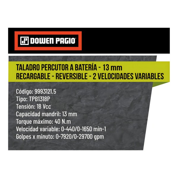 Taladro Percutor 13mm 18v Dowen Pagio No Incluye BaterĂa