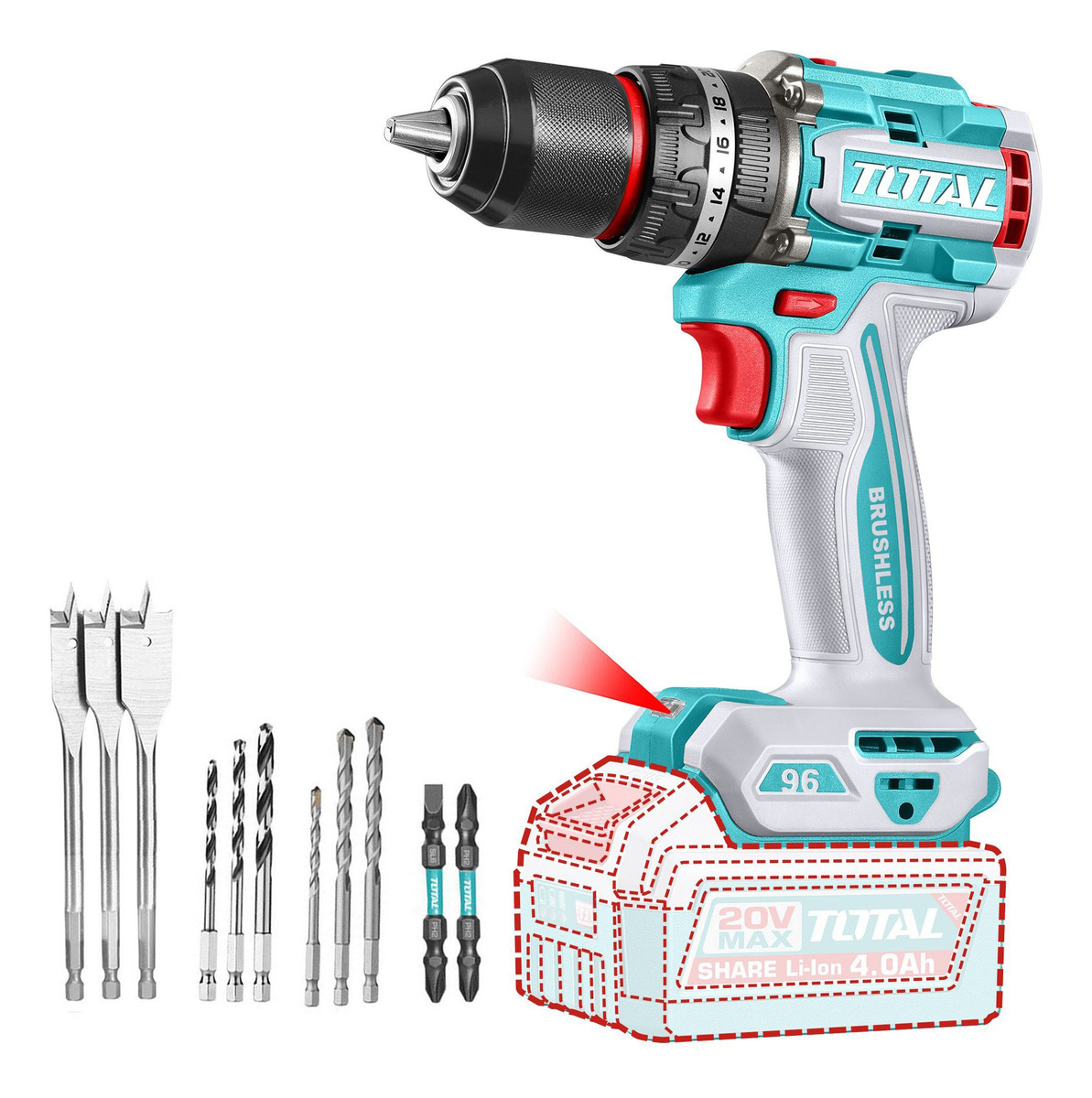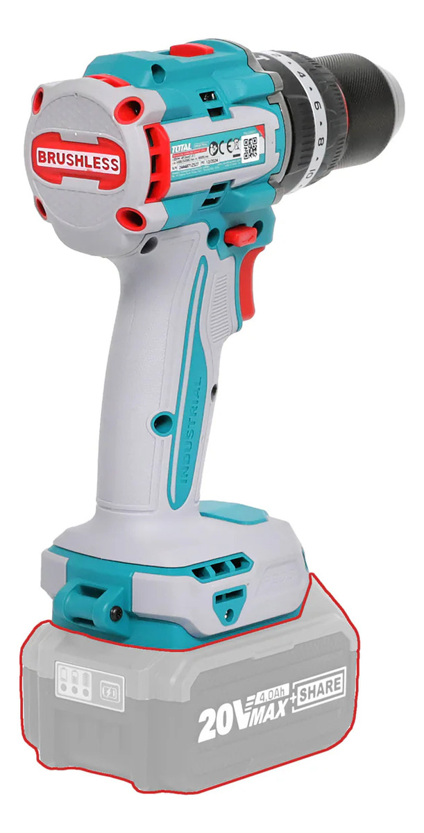 Esta herramienta funciona con baterĂas de 20v de Total.